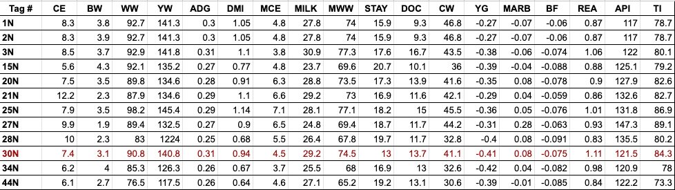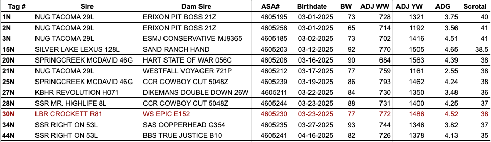 BW: 65 | ADJ WW: 714 | ADJ WW: 1192 | Scrotal (CM): 41 | ADG: 3.56